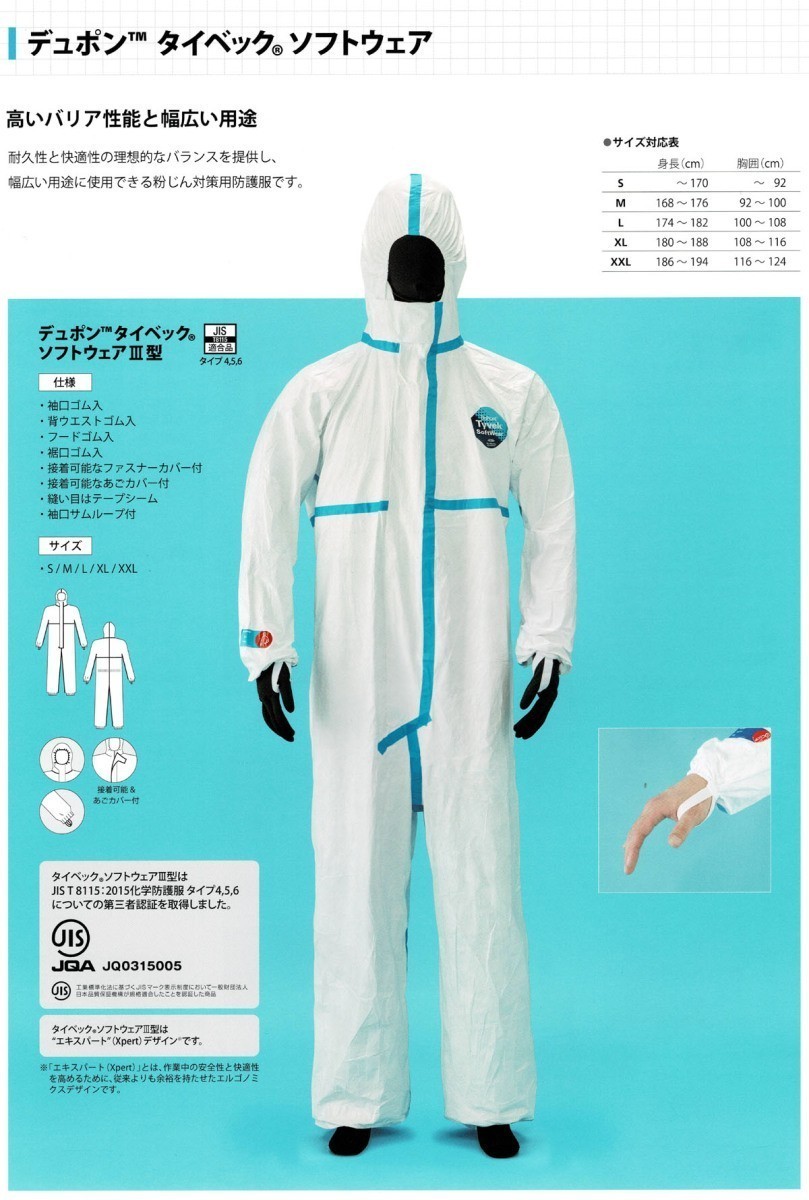 タイベック ソフトウェア3型 Lサイズ 10着 防護服 デュポン アゼアス ソフトウェアIII型 保護服 使い捨て 化学防護服