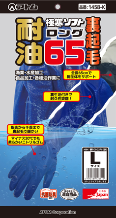 アトム 耐油極寒ソフトロング65 裏起毛で暖かい 1458-K Lサイズ 耐油防寒手袋 全長65cm