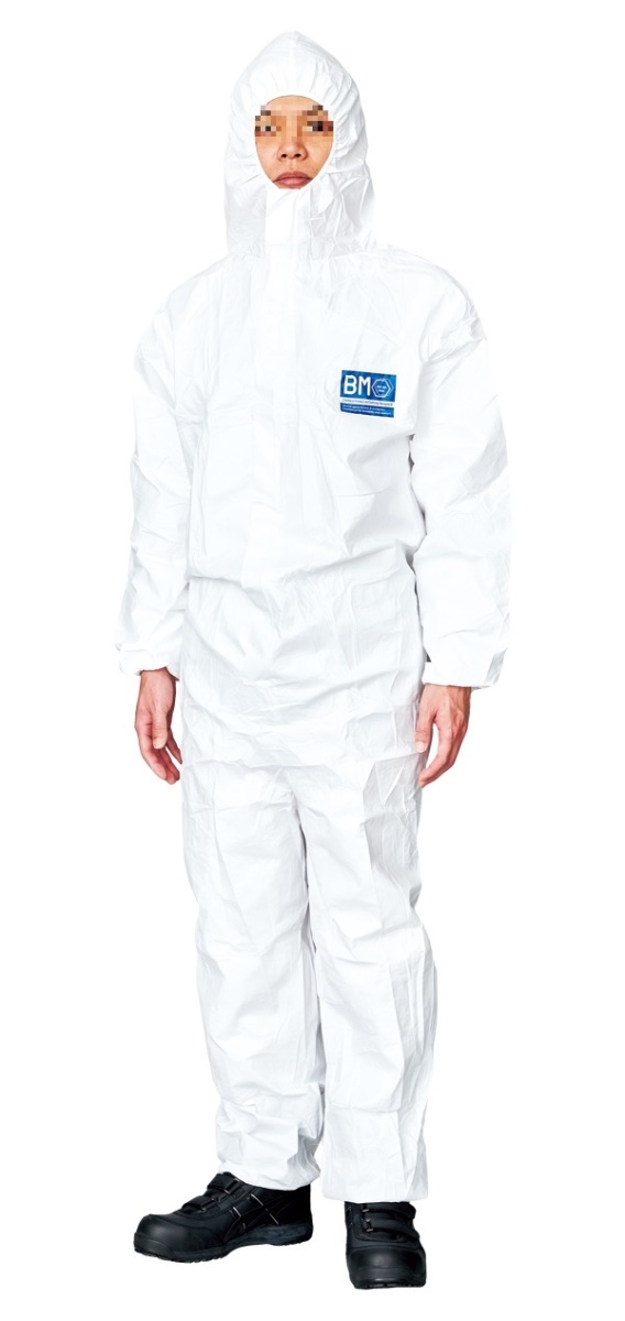 P3040 LLサイズ 身長176〜182cm 胸囲100〜108cm 仕様・特徴水分や油に強い、防水透湿フィルム採用しました。ポリプロピレン不織布に透湿性のある特殊ポリエチレンフィルムをコーティングした素材は、耐粉塵、ウイルスバリア性に高い効果を発揮します。 《JIS T 8115 適合品》●浮遊固体粉じん防護用密閉服 タイプ5●ミスト防護用密閉服 タイプ6 用途・アスベスト取扱い作業・原子力施設保守作業・ガラス繊維取扱い作業・ペイントスプレー作業・ダイオキシン取扱い作業・機械メンテナンス作業