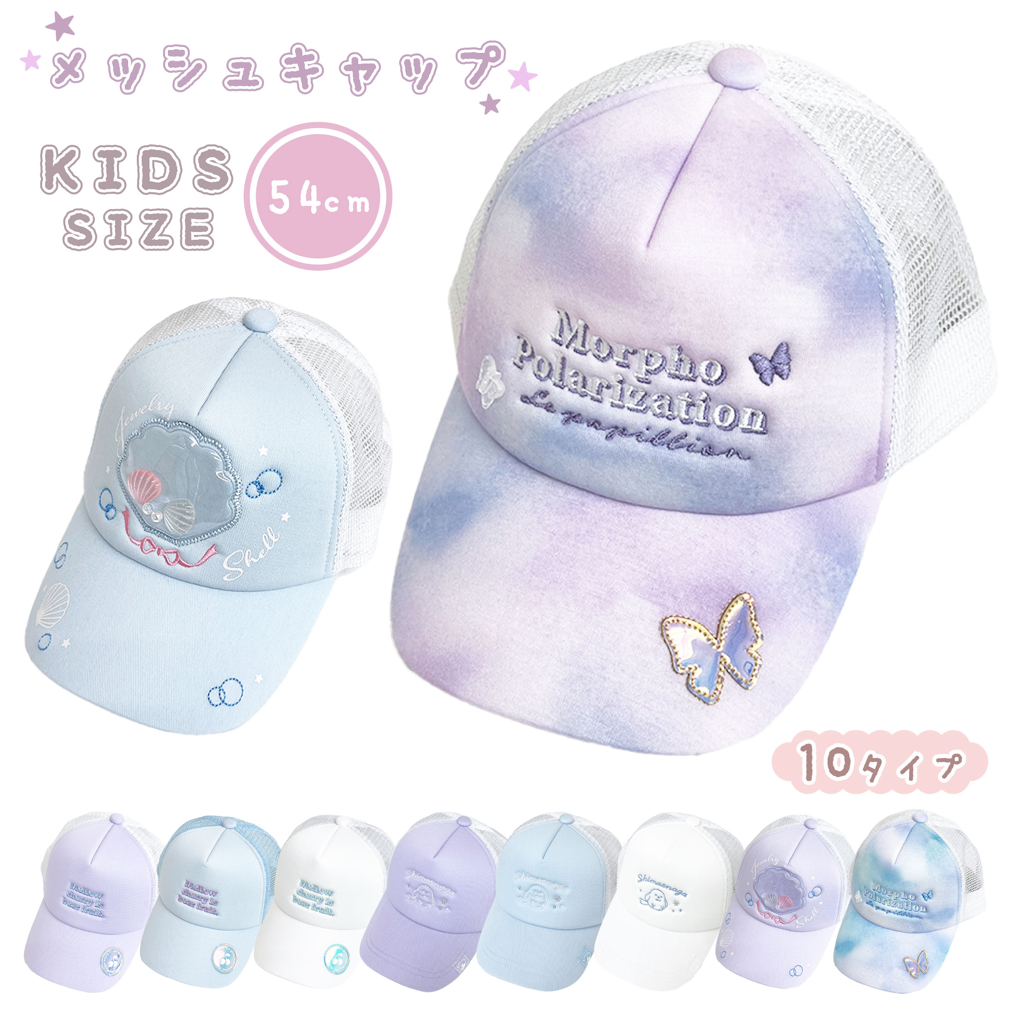 ガールズキャップ キャップ 帽子 メッシュ メッシュキャップ キッズサイズ 女の子 帽子 子供 保育園 小学生 プレゼント ギフト