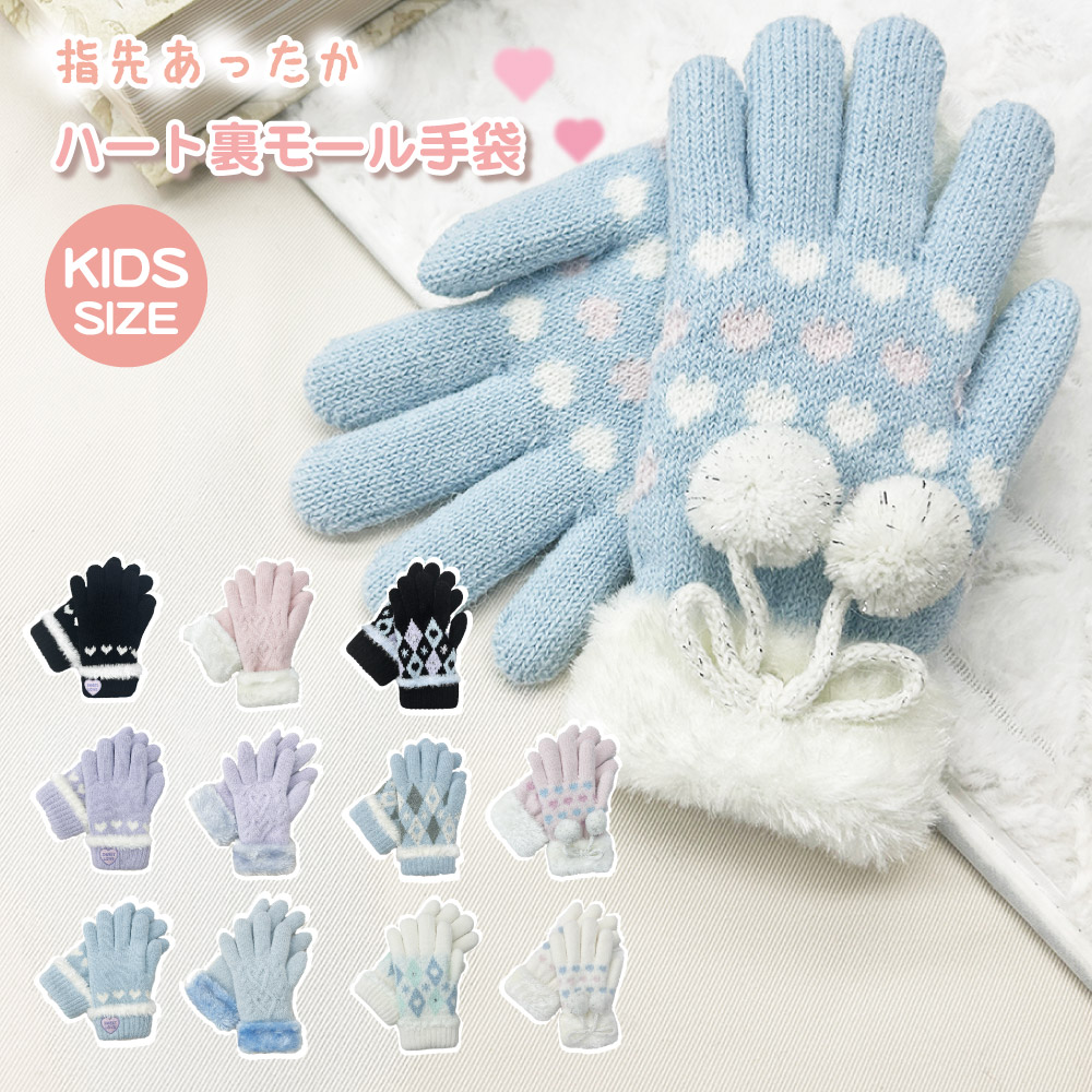 ハート柄 手袋 キッズ ふわもこ 通学 小学生 暖かい 子供 キッズ 女の子 てぶくろ 5本指 かわいい キッズ手袋 子供用 防寒 プレゼント ギフト
