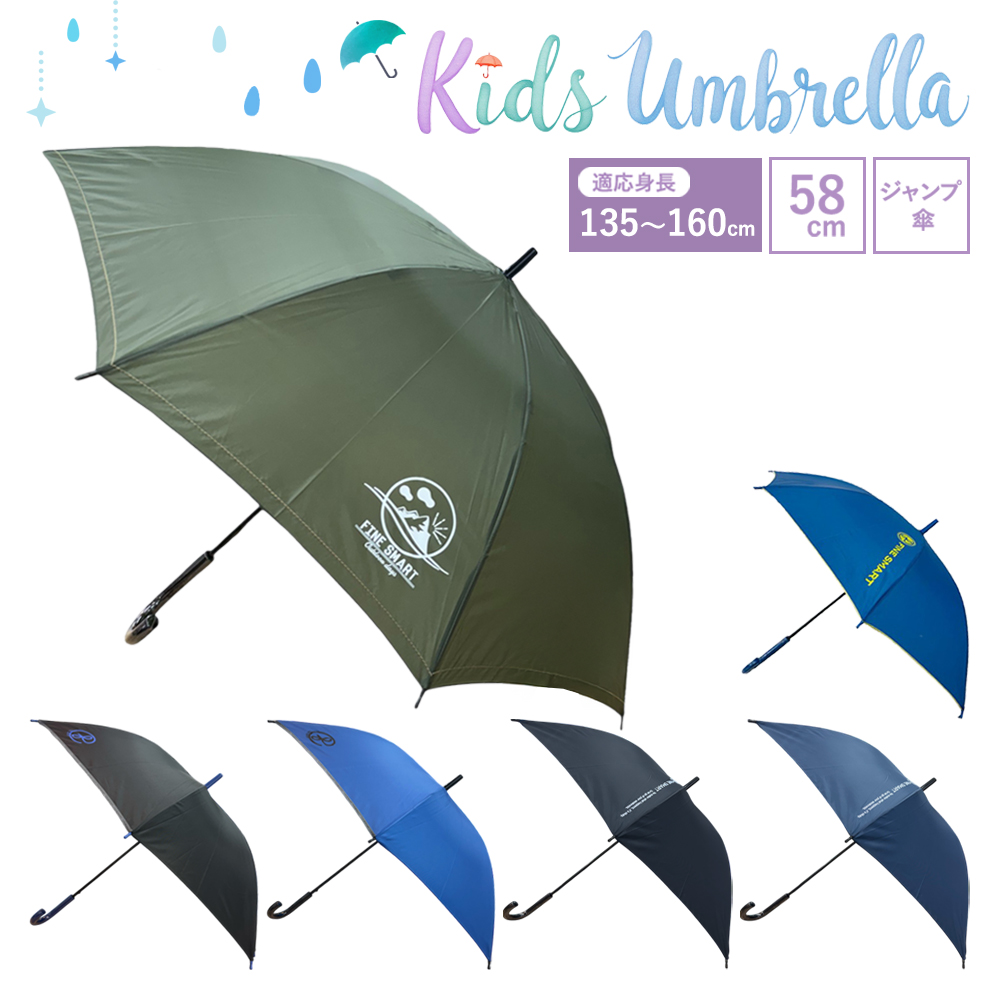 ボーイズ 58cm 長傘 グラスファイバー骨 男の子 学童 雨傘 通学 安全手元 子供ジャンプ傘