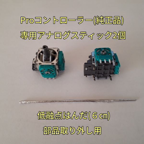 ニンテンドースイッチのProコントローラー(純正品)専用のアナログスティック基板2個と低融点はんだ(6cm)のセットです。