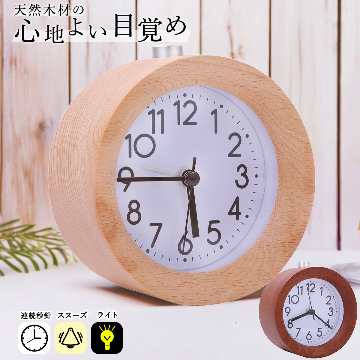 目覚まし時計 アナログ 子供 こども 丸形 男の子 女の子 静音 スヌーズ 木製 旅行用 北欧 小型 アラーム おしゃれ 置き時計 静か かわいい プレゼント