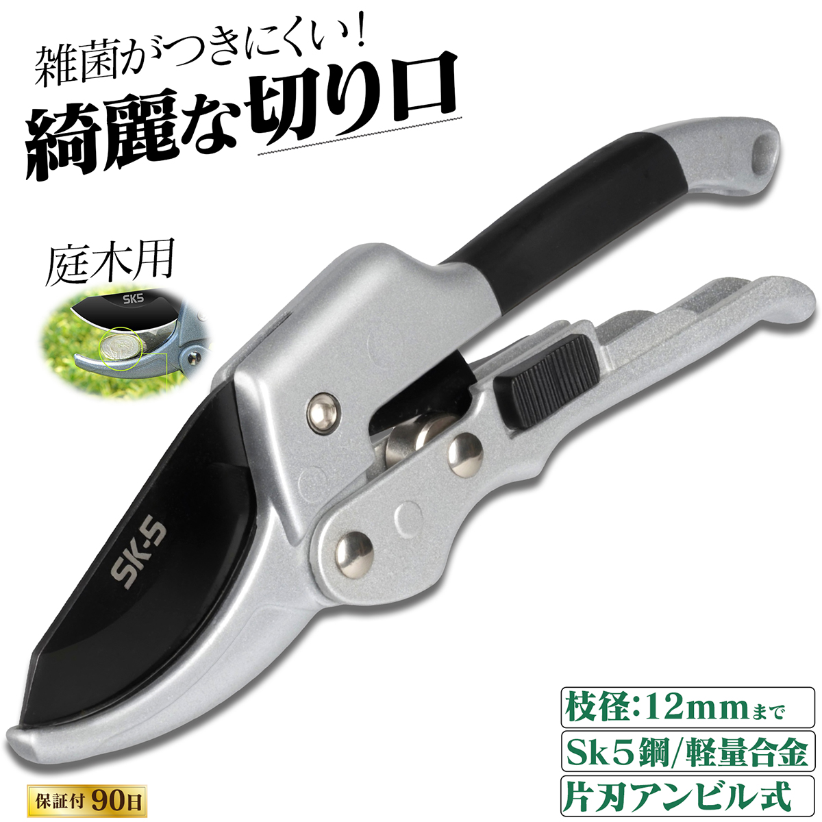 剪定ばさみ 【雑菌がつきにくい綺麗な切断面】 アンビル式 片刃 sk5鋼材 アルミ合金 安全ロック 園芸ばさみ 庭木ばさみ