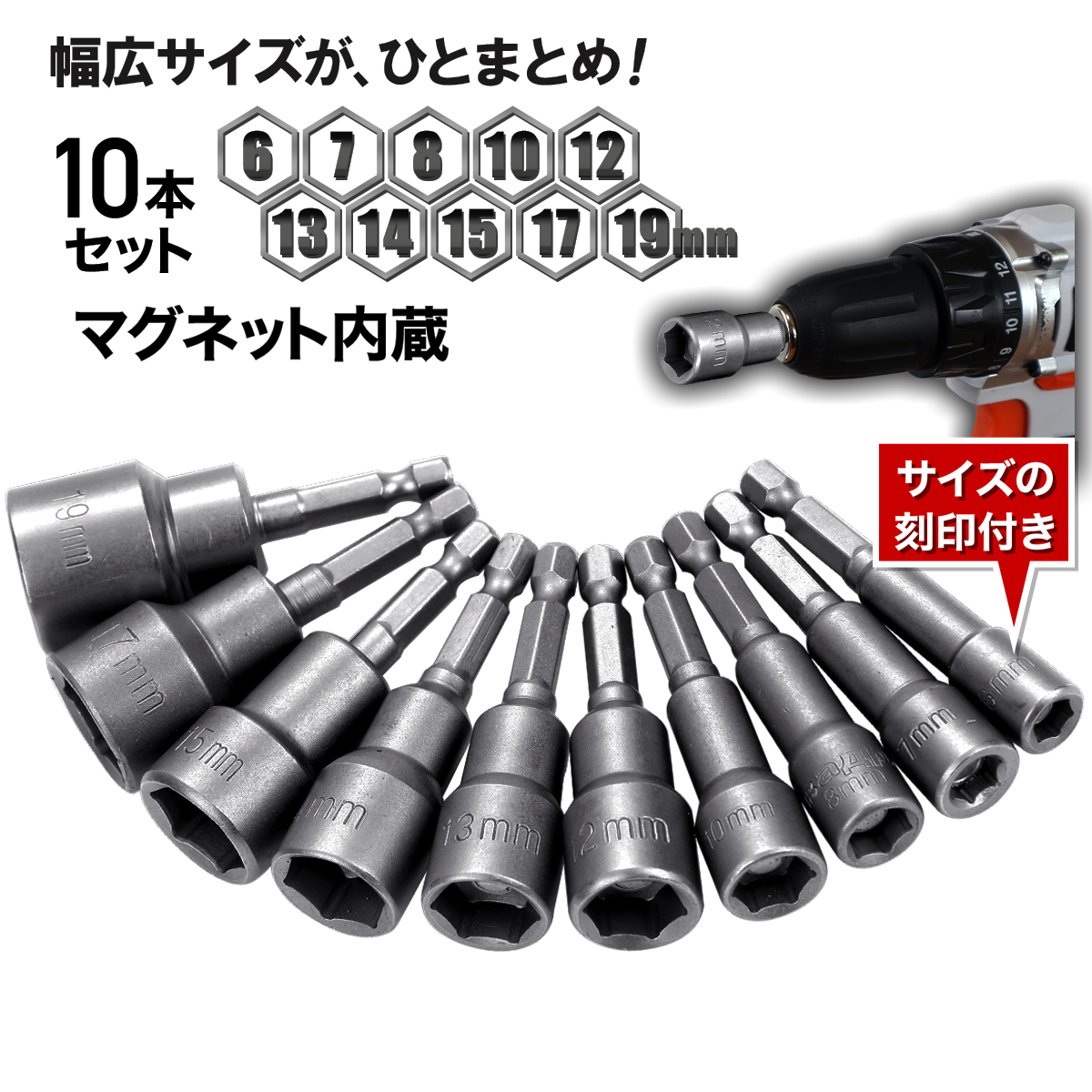 ソケットアダプターセット 1/4 6.35 6角軸 インパクト用 ソケットビット 磁石内蔵