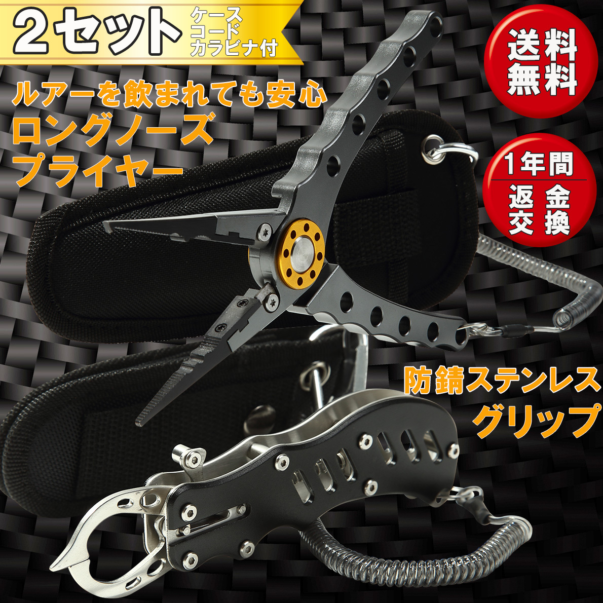 フィッシングプライヤー フィッシュグリップ セット | 釣りペンチ 防錆アルミ ステンレス ホルダー付