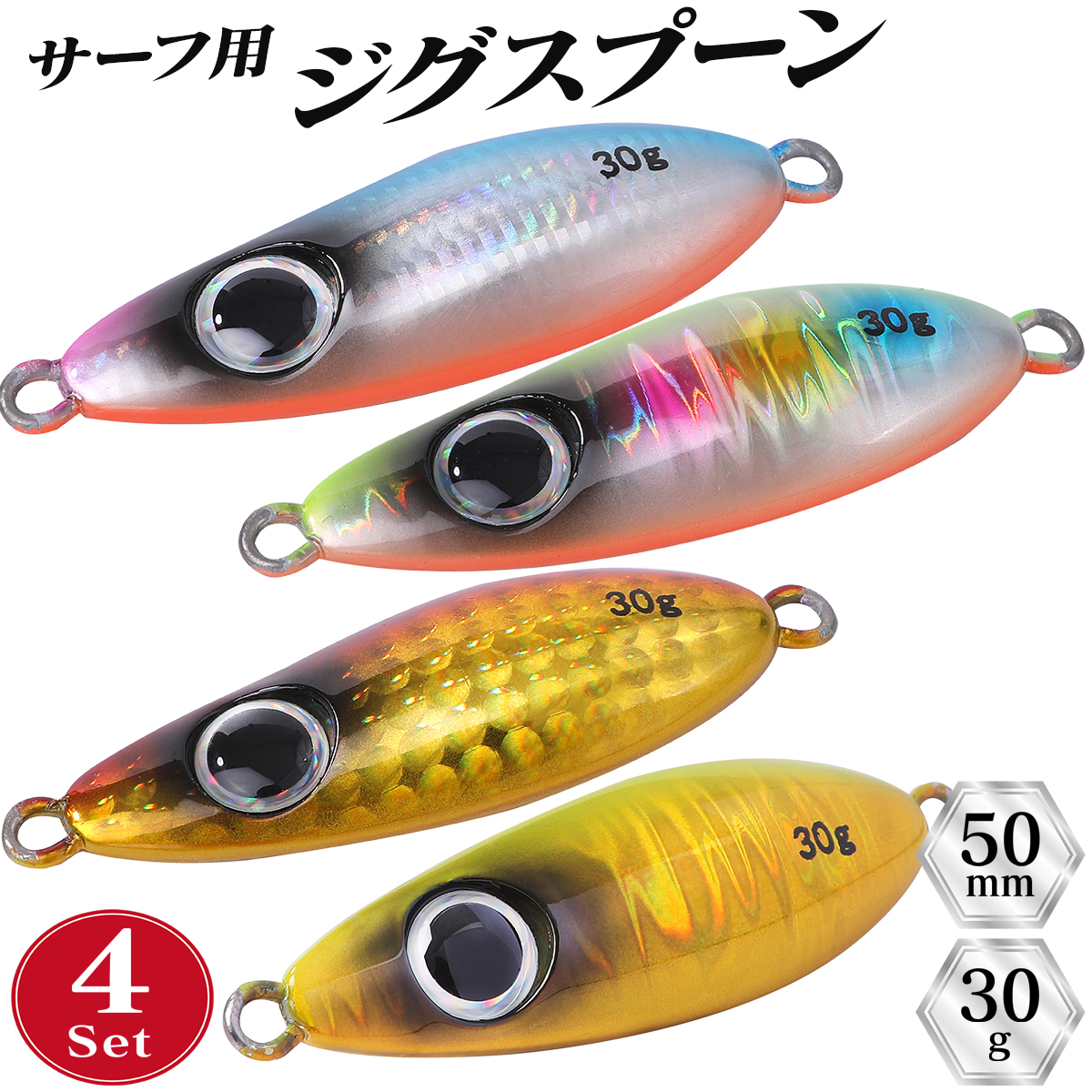 メタルジグ 30g 4セット ジグ セット サーフ ジグスプーン ヒラメ 青物 マゴチ 後方重心 左右非対称 飛ぶ サーフジギング CONTYU