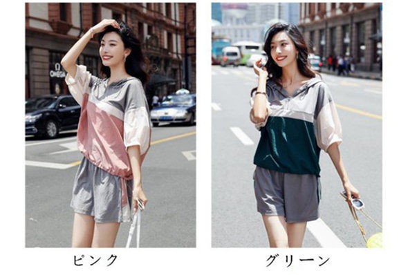 セットアップ レディース 五分袖 スウェット スエット 上下 紫外線カット UVカット ルームウェア スウェットパンツ トレーナー 2020春夏