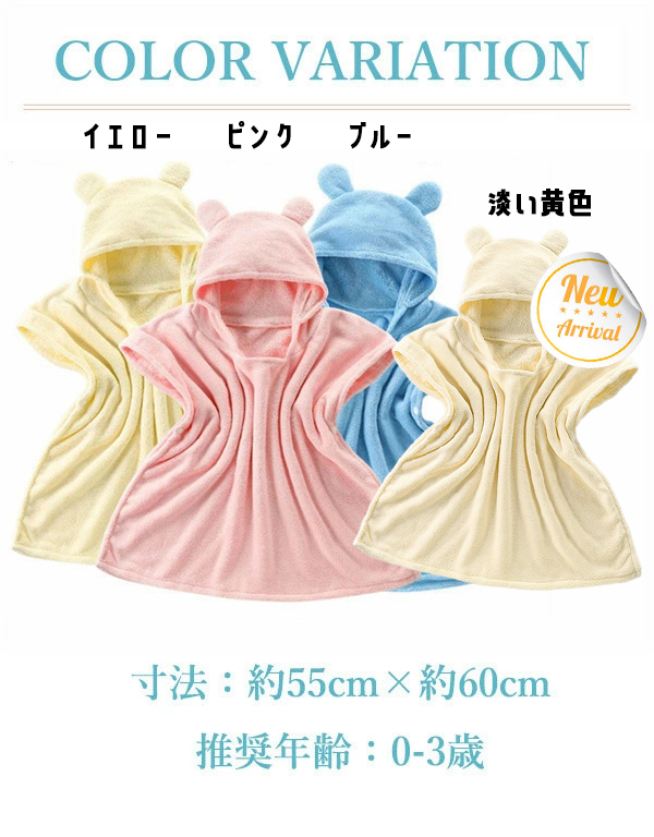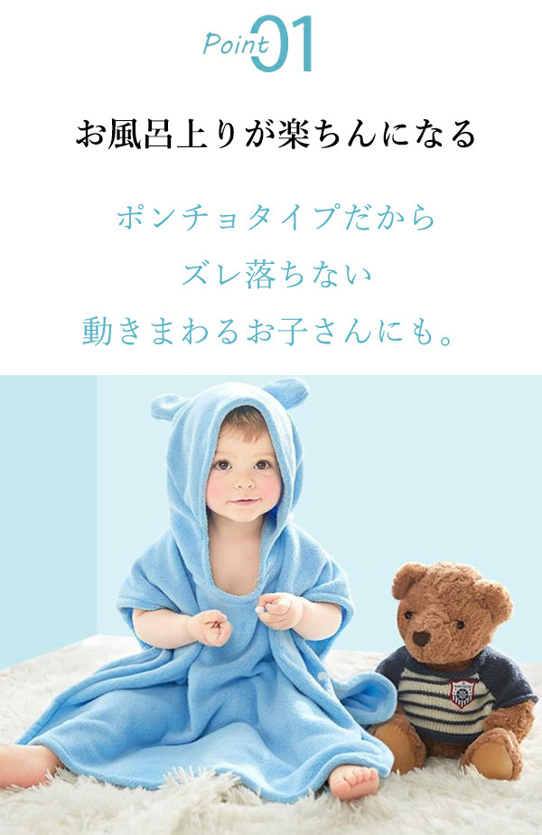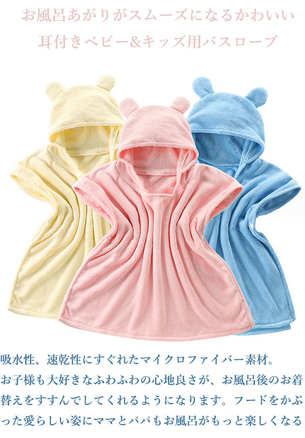 ベビーバスローブ バスポンチョ プール バスタオル 出産祝い ギフト 男の子 女の子 プレゼント ワンオペ お風呂用品 吸水速乾 フード付き こども 送料無料