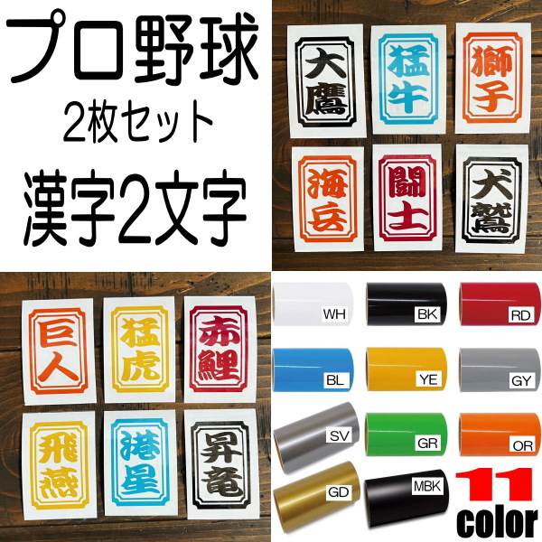 【2枚セット】プロ野球 12球団 セリーグ パリーグ 喧嘩札 漢字 大鷹 獅子 海兵 闘士 猛牛 犬鷲 昇竜 猛虎 巨人 飛燕 赤鯉 港星 文字抜きステッカー カラー11色