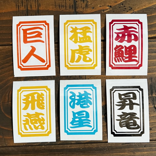 プロ野球の12球団を漢字二文字で表わしたステッカーです