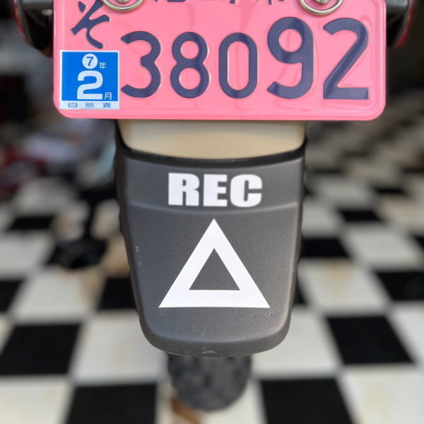 【原付二種125cc】バイクの三角マーク 表示ステッカー エンブレム ドラレコ REC 録画中 ダミー カッティング ステッカー ホワイト