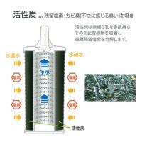 ●ろ過材の銀添着活性炭は、水道水中のカルキ臭やトリハロメタン等を吸着しても、銀の抗酸化作用により抗菌性を保持します。
