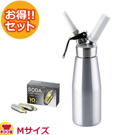 ●Mサイズの本体とNTGソーダカートリッジ10本のセットです。●爽快な泡の刺激が楽しい、新感覚調理マシンです。●フルーツやアルコールなど、食材にCO2(炭酸ガス)を添加することで、発泡性の"泡"を作り出します。●炭酸ガスを直接添加するので、独特のシュワシュワ感をドリンクやフルーツにプラスすることができます。●ワインなら、スパークリングワインに! ウィスキーなら、ハイボールに! アップルジュースなら、シードルに大変身!!【cookcook、クッククック、厨房用品、サービス用品、炭酸水製造器、日本炭酸瓦斯、espuma-m-set、4930846000055、1-0924-0201、1-0924-0301、9-0924-0201、9-0924-0301、FES5001、FES-50、8-0884-0901、4930846100038、8-0884-0301、7-0860-0301、6-0816-0301、5-0736-0301、PSC7201、PSC-72、NTG、espuma、sparkling、advance、アドバンス、アドヴァンス、個人用、個人向け、家庭用、業務用、ガス、tkg、遠藤商事、高圧ガス、食品添加物、二酸化炭素、ミニガスカートリッジ、ソーダバルブ、炭酸ガス、ソーダガス、ソーダ―、soda、ディスペンサー、シーオーツー、シルバー、レッド、赤】