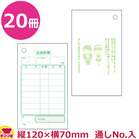●お客様のオーダーが一度で決まるお店向きの通しナンバー入り単式伝票です。●定番メニューのオーダー頻度が高い場合、メニューの記入を省くためにあらかじめ品名が印刷されています。●100枚ごとに表紙と裏ボールが付いていて、のりづけ製本されています。●No.1〜100までの通しナンバー入りです。●オーナーが店舗に常駐できない場合に、従業員による不正防止に役立ち、また、伝票の整理にも役立ちます。【cookcook、クッククック、インテリア、店舗備品、会計伝票、大黒工業、原産地:日本、K-404N、4975139556642、201006、伝票、会計、1枚、番号、ナンバー、だいこく、ダイコク】