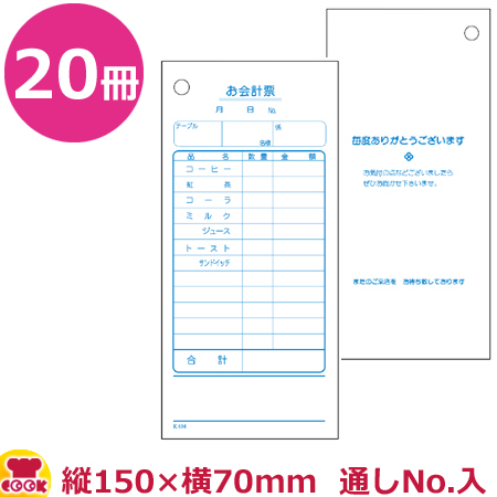 大黒工業 会計票 8行 番号入(No.1〜100)K-407N 100枚×20冊
