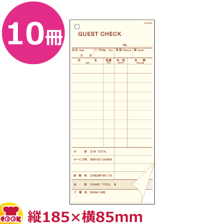 ●掛売りを行って2枚目を請求明細として渡す場合(信用UP)店舗での売り上げを本部に報告する場合、出前をする場合に使用します。●ノーカーボン紙使用【cookcook、クッククック、インテリア、店舗備品、会計伝票、大黒工業、原産地:日本、K-620E、4975139558103、201533、伝票、会計、2枚、日付、テーブルNo、テーブル番号、客数、係、サービス料、小計、消費税、ご署名、ノーカーボン、だいこく、ダイコク】