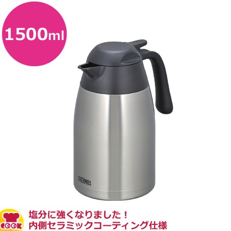 ●魔法びん構造で高い保温、保冷力。●中せんが360度回転で簡単にオープンでき、回しやすく、注ぎやすい。●広口7cmなので手が入りやすくお手入れが簡単。●中せんが外せてすみずみまで洗えて衛生的。●内側セラミックコーティング仕様で塩分に強く、撥水性が高い。【cookcook、クッククック、厨房用品、サービス用品、業務用ポット、サーモス、原産地:中華人民共和国、THZ-1500、4562344360258、6-0789-1003、BSA-63、THERMOS、thermos、温かい、冷たい、冷めない、錆びない、錆びにくい、天つゆ、出汁、つけ麺、スープ、ルームサービス、仕出し、茶、湯、コーヒー、紅茶、卓上、便利、食堂、そば、うどん、和食、サービス、レストラン、ホテル、冷水、ホット】