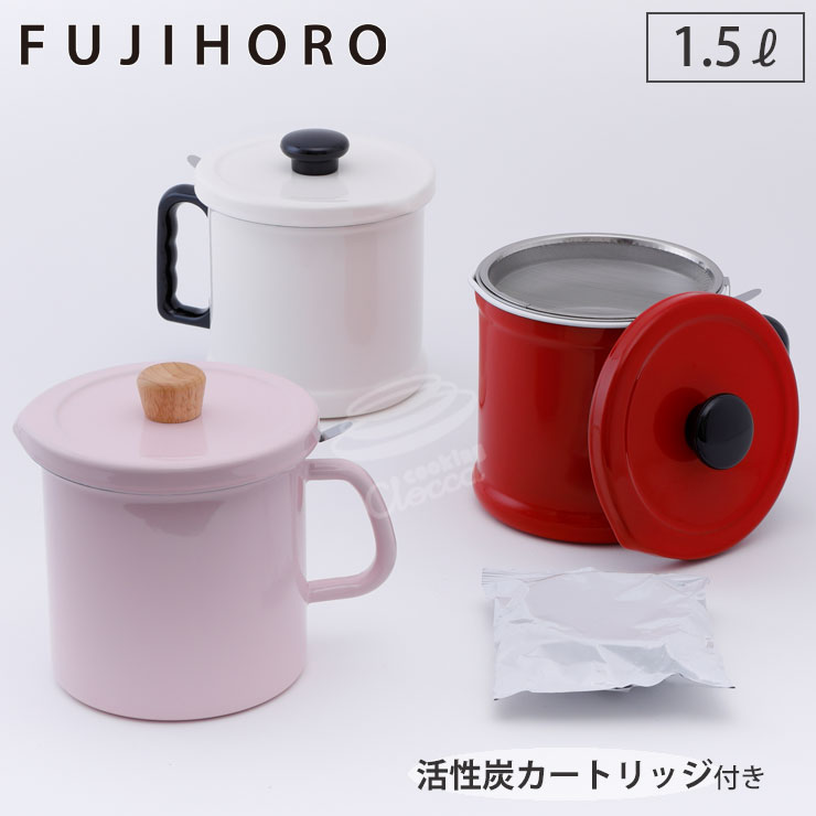 富士ホーロー オイルポット ホーロー 1.5L 油こし器 活性炭カートリッジ付き 琺瑯 油ポット 油こし器