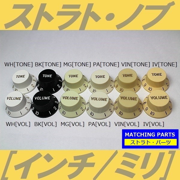 ストラトノブ ミリ・インチ共用 ホワイト ブラック ミントグリーン パーチメント ヴィンテージ アイボリー ポットノブ ストラトマッチングパーツ