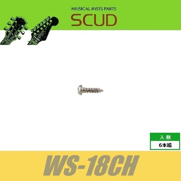 SCUD WS-18CH ロトマチック取付けビス ギターペグ用 Φ2.4 xL10mm/ なべ頭 6pcs クローム ねじ スカッド