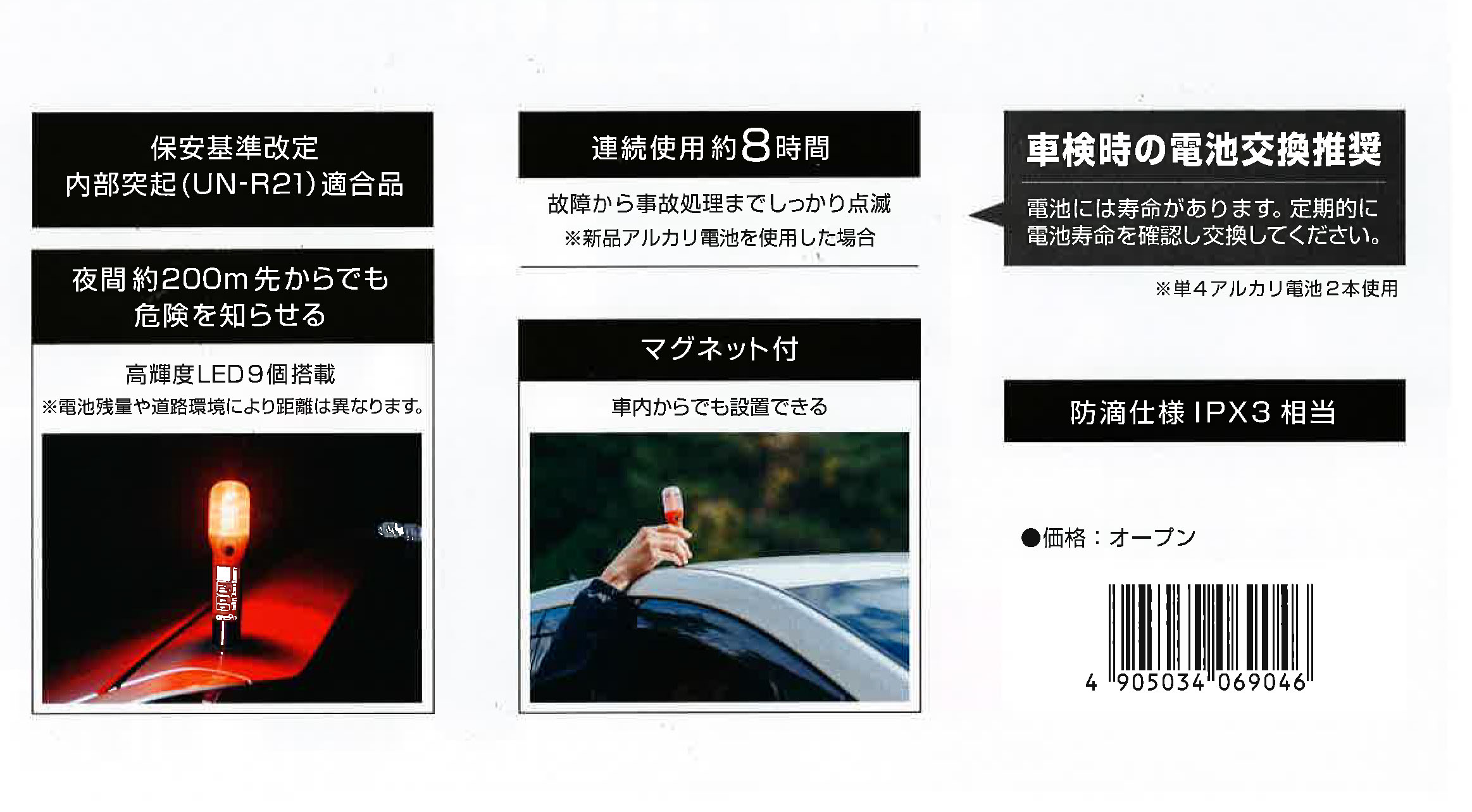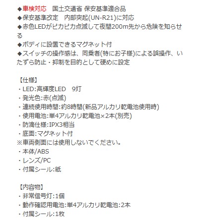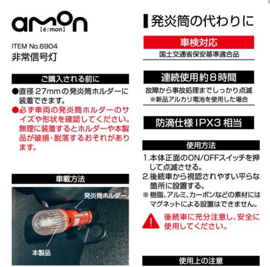 6904 エーモン工業 非常信号灯 車検対応 LED マグネット付 発煙筒 の代わり 保安基準適合品 緊急時 車 電池式