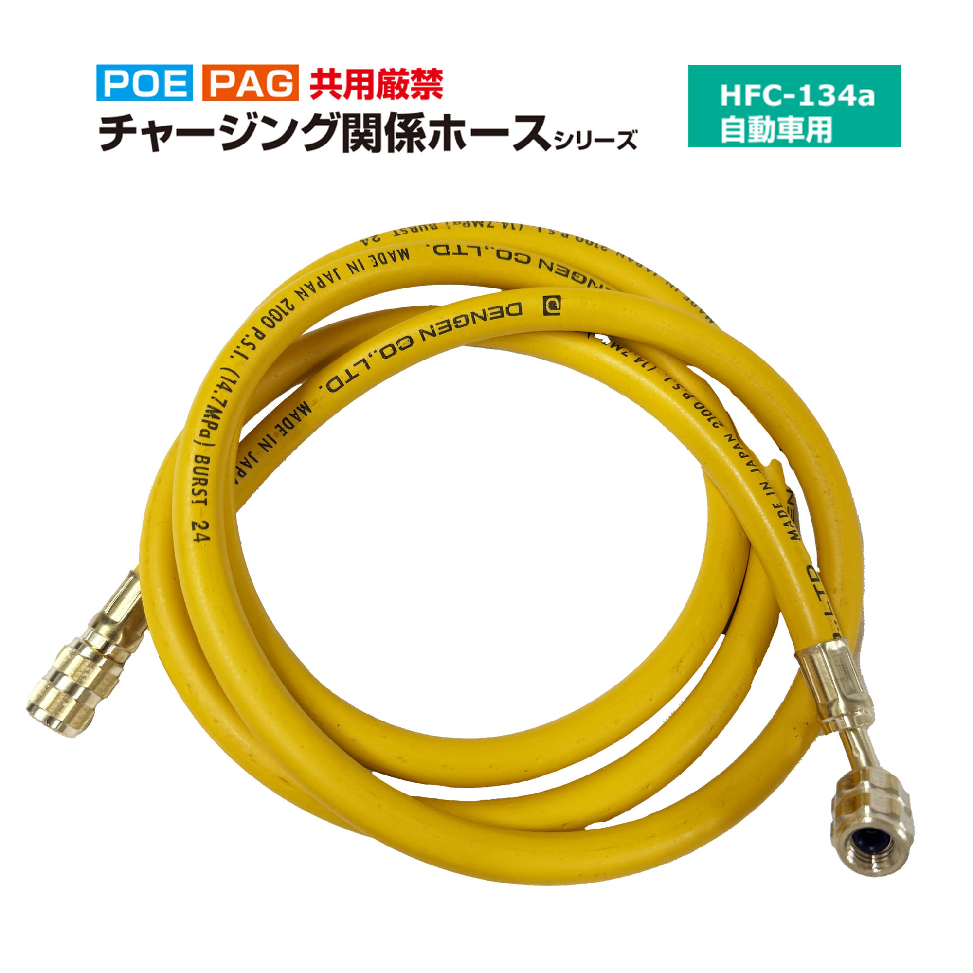 チャージングホース 黄色 低圧用 134a 1.6M デンゲン ゲージマニホールド CP-H1600FY-SL カーエアコン クーラー 車