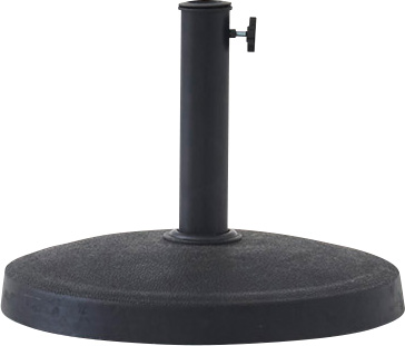ガーデンパラソル用のスタンドです。重量は約15kgですので、しっかりとパラソルを支えることができます。設置場所の形状が平らでない場合や、地面が傾いている場合などは接地面をフラットにしてからご使用ください。また、強風の際は使用しないようにご注意ください。