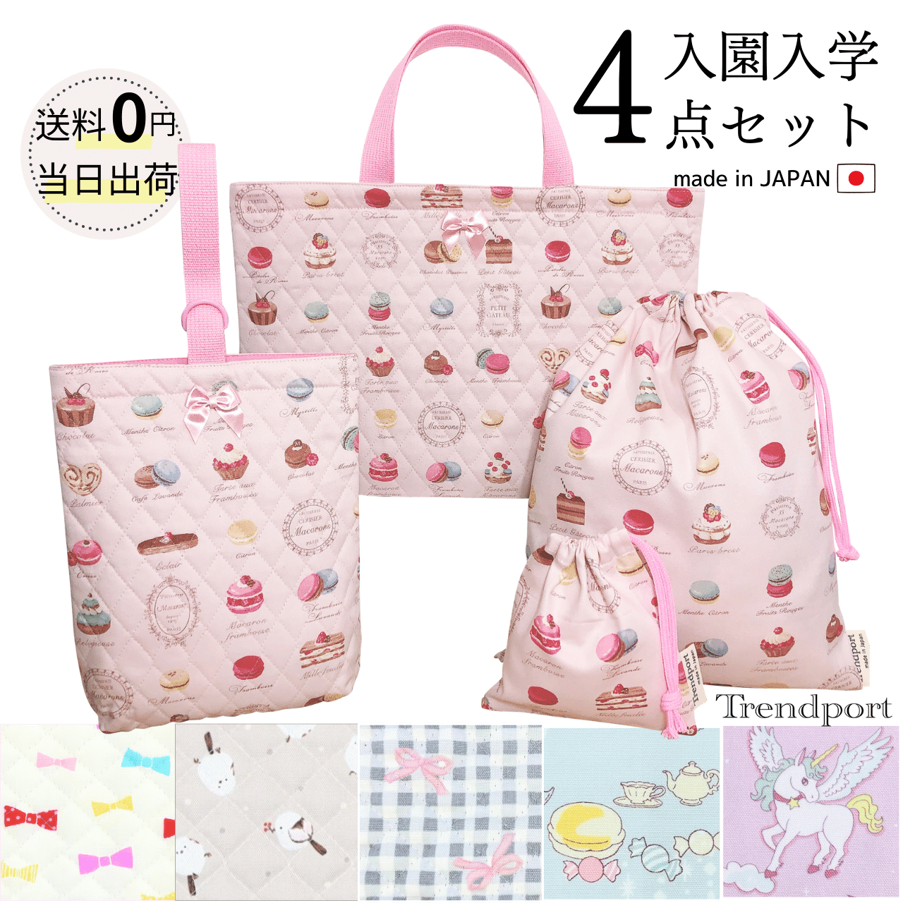 入園 入学 4点セット 女の子 おしゃれ かわいい キルティング レッスンバッグ 上履き入れ 巾着袋 大小 セット 日本製 保育園 幼稚園 小学校