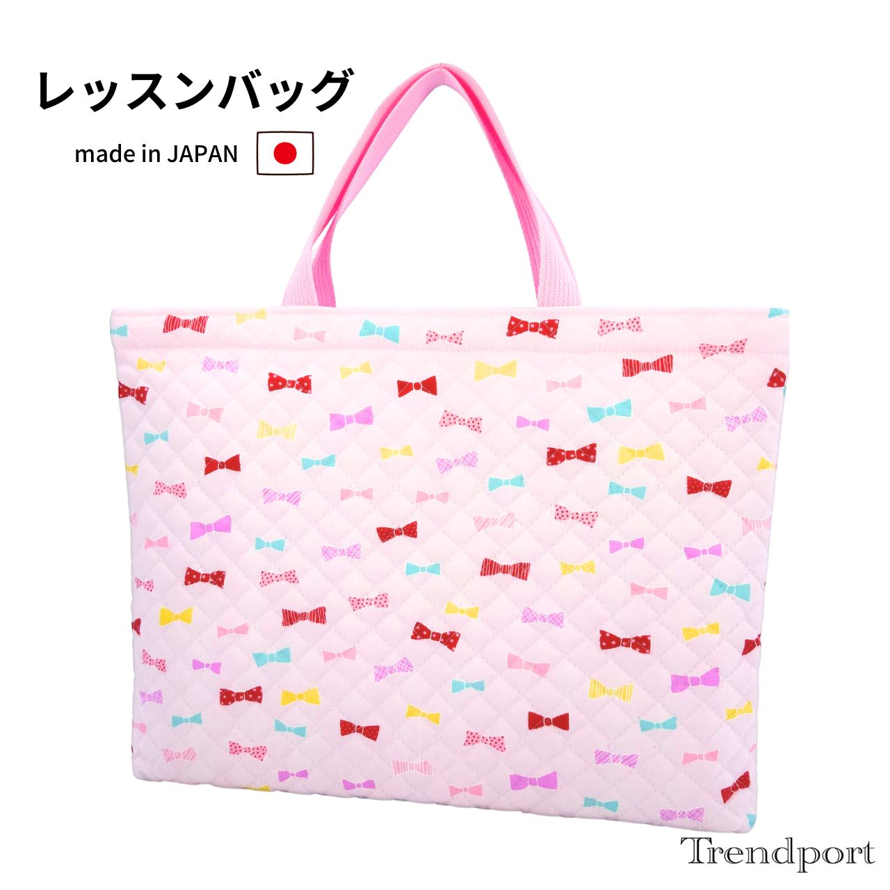 レッスンバッグ キャンディりぼん ピンク 女の子 キルティング A4 B4 保育園 幼稚園 小学校 小学生 日本製 綿 図書 絵本袋 お道具箱 お稽古 塾 習い事