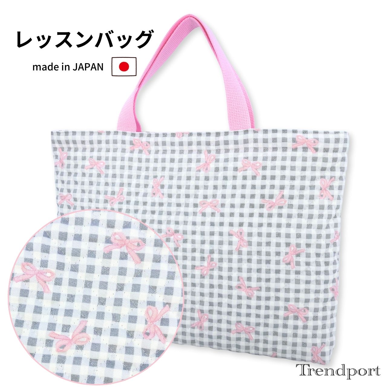 レッスンバッグ コリアン風 チェック りぼん 女の子 キルティング A4 B4 保育園 幼稚園 小学校 小学生 日本製 綿 図書 絵本袋 お道具箱 お稽古 塾 習い事
