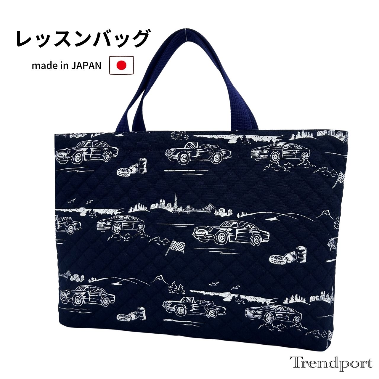 レッスンバッグ 男の子 スポーツカー ネイビー キルティング A4 B4 保育園 幼稚園 小学校 小学生 日本製 綿 子供 絵本袋 図書袋 かっこいい車