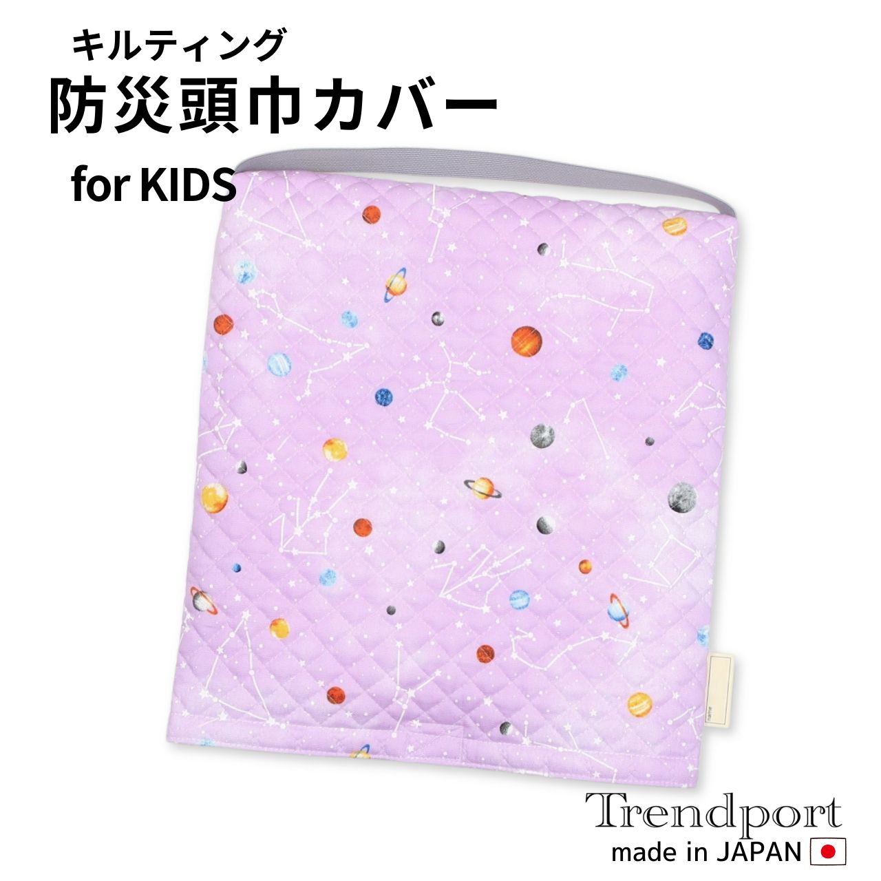 防災頭巾カバー 子供用 宇宙と星座 パープル キルティング 保育園 幼稚園 小学校 日本製 綿 子供 園児 正方形 シンプル 座布団型ゴム付