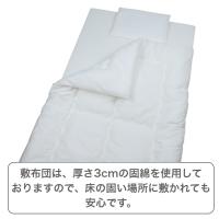 敷き布団は、厚さ3cmの固綿を使用しておりますので、床の硬い場所に敷かれても安心です。