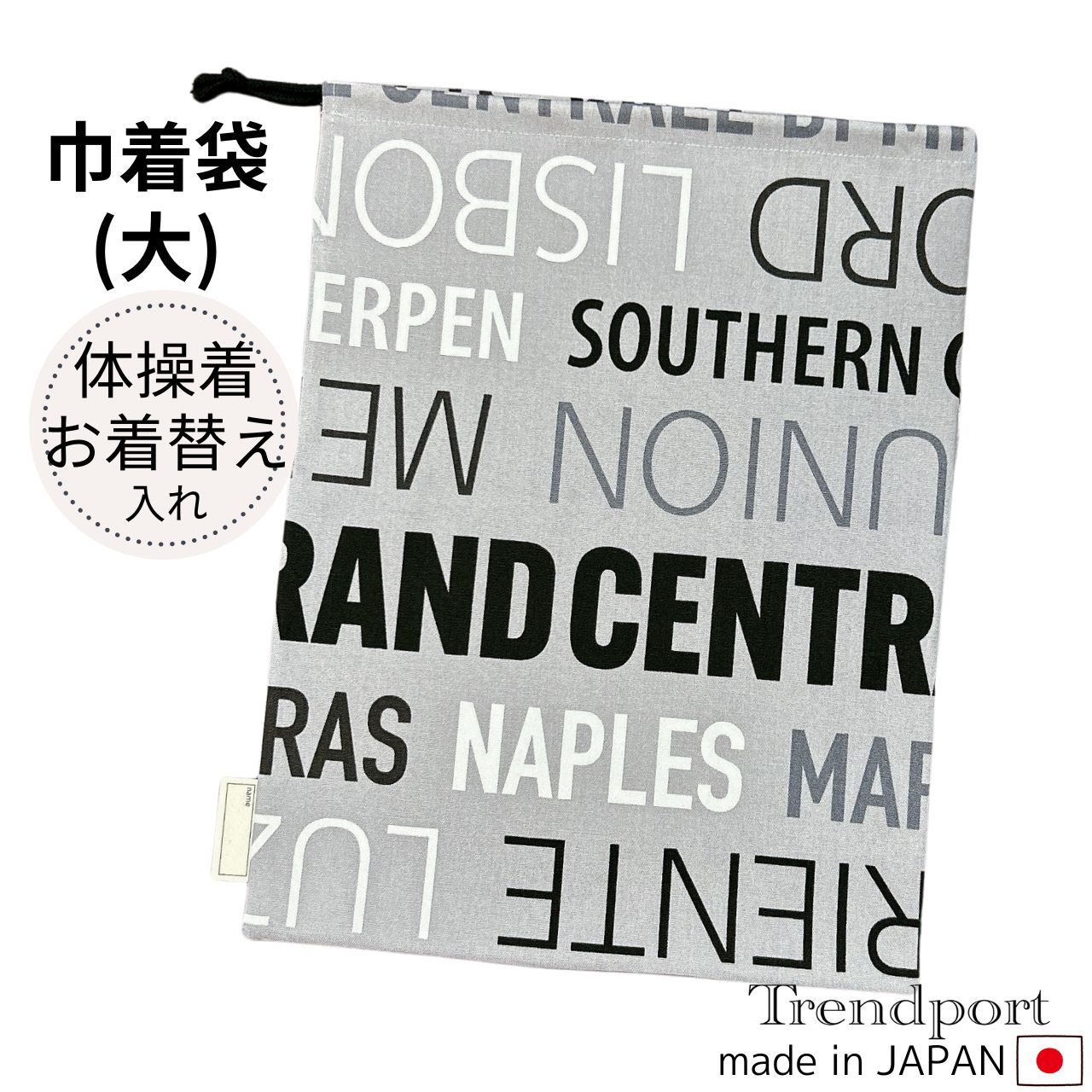 巾着袋 大 男の子 アルファベットタウン グレー 大きめ 体操着袋 お着替え袋 保育園 幼稚園 小学校 日本製 綿 子供 30x40