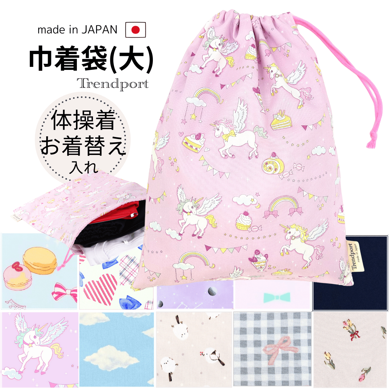 巾着袋 大 おしゃれ 女の子 ユニコーン マカロン りぼん 大きめ 体操着袋 体操服入れ お着替え袋 保育園 幼稚園 小学校 日本製 綿 子供 かわいい 30x40