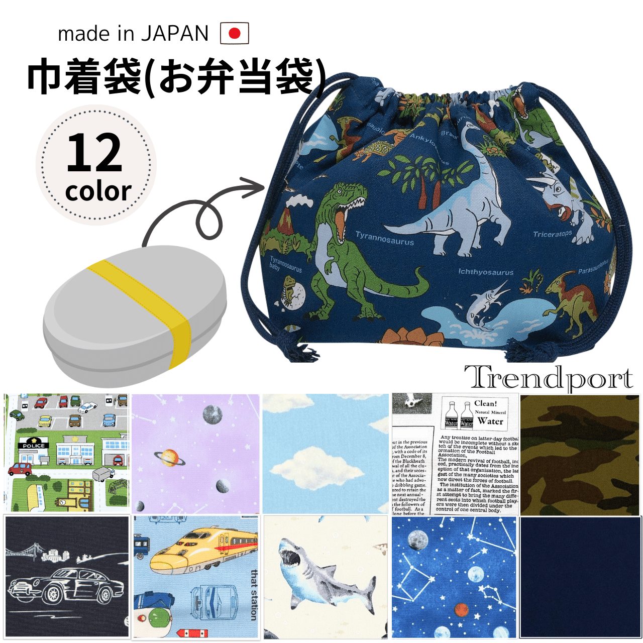 巾着袋 お弁当袋 おしゃれ 恐竜 電車 新幹線 車 男の子 お弁当箱入れ ランチ巾着 給食 保育園 幼稚園 小学校 綿 子供