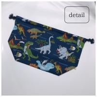 お弁当箱やランチの食べ物を入れるのにぴったりの、たっぷりマチあり巾着袋です。