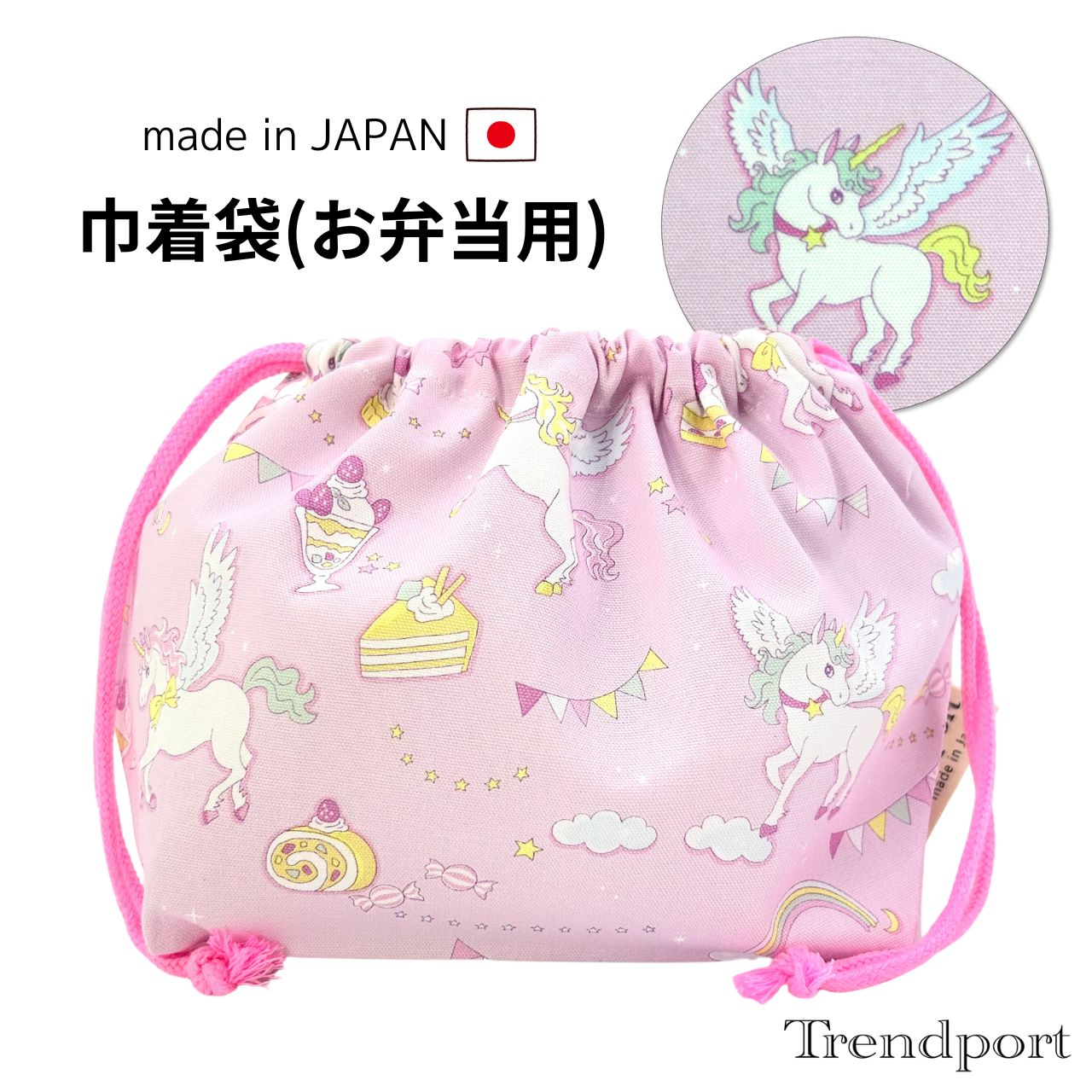 お弁当袋 巾着 ユニコーン パープル 子供 女の子 幼稚園 保育園 小学校 横入れ 布 綿 子供 おしゃれ ランチ巾着