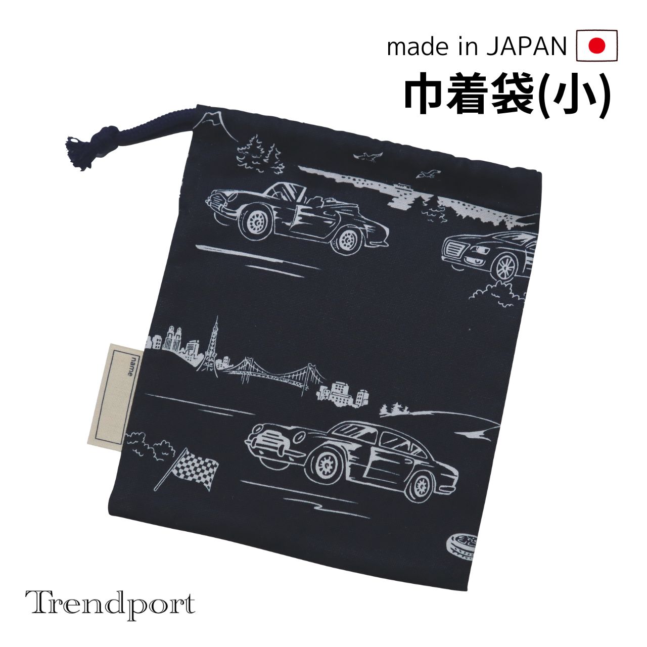 巾着袋 小 コップ袋 男の子 スポーツカー ネイビー コップ袋 給食袋 男の子 保育園 幼稚園 小学校 日本製 綿 子供
