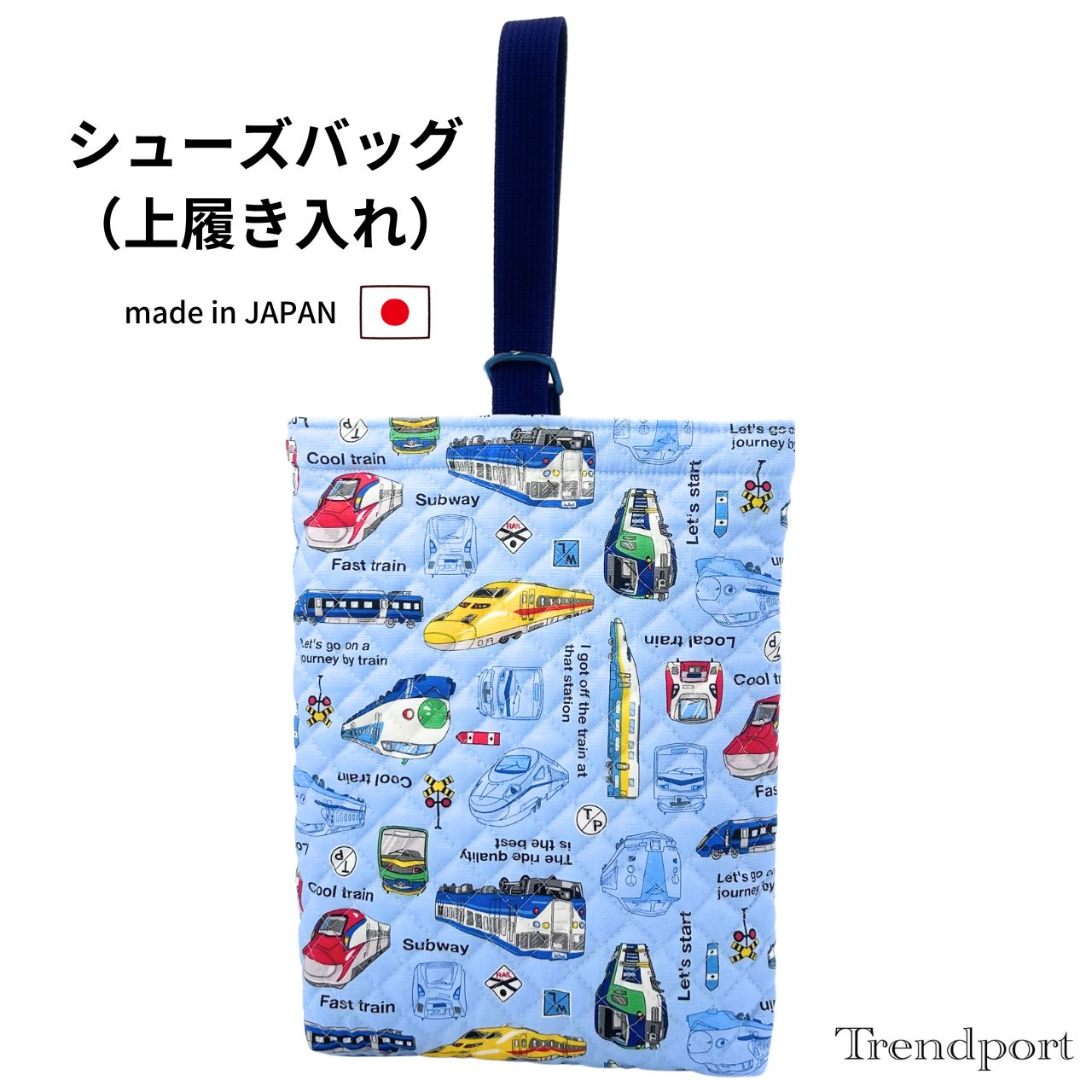 シューズバッグ 電車 ライトブルー 男の子 キルティング 上履き入れ 保育園 幼稚園 小学校 日本製 綿 子供 上履き入れ シューズケース