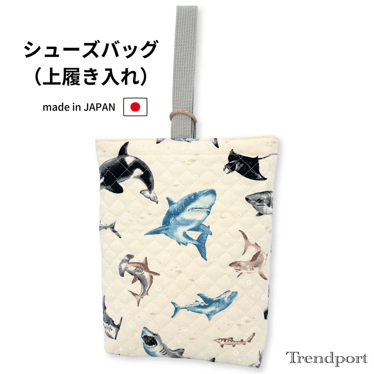 上履き入れ シューズバッグ シャーク キナリ 男の子 キルティング 保育園 幼稚園 小学校 日本製 綿 子供 シューズケース