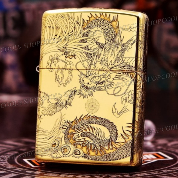 昇り龍 鳳凰 五面総彫り 和彫り デザイン オイルライター ZORRO ゴールド ZIPPO同サイズ ジッポ ジッポー 父の日 プレゼント 送料無料