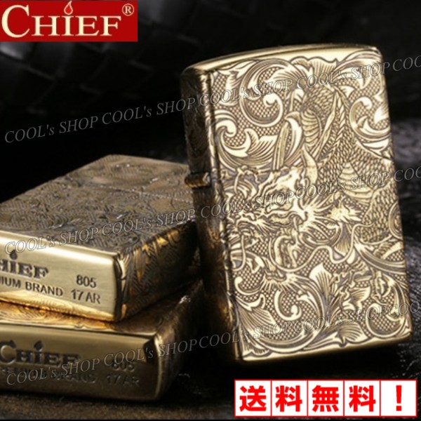 四面総彫り 昇り龍 和彫り デザイン オイルライター CHIEF ゴールド ZIPPO同サイズ ジッポ ジッポー 父の日 プレゼント 人気 送料無料