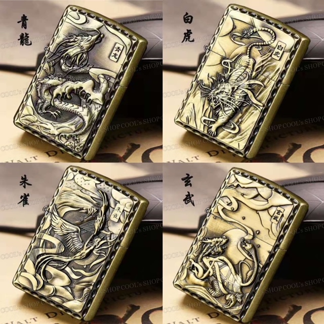 四神 リューター加工 デザイン オイルライター ZIPPO 同型 Jantai 霊獣 聖獣 和柄 和彫り 白虎 青龍 朱雀 玄武 ゴールド 送料無料