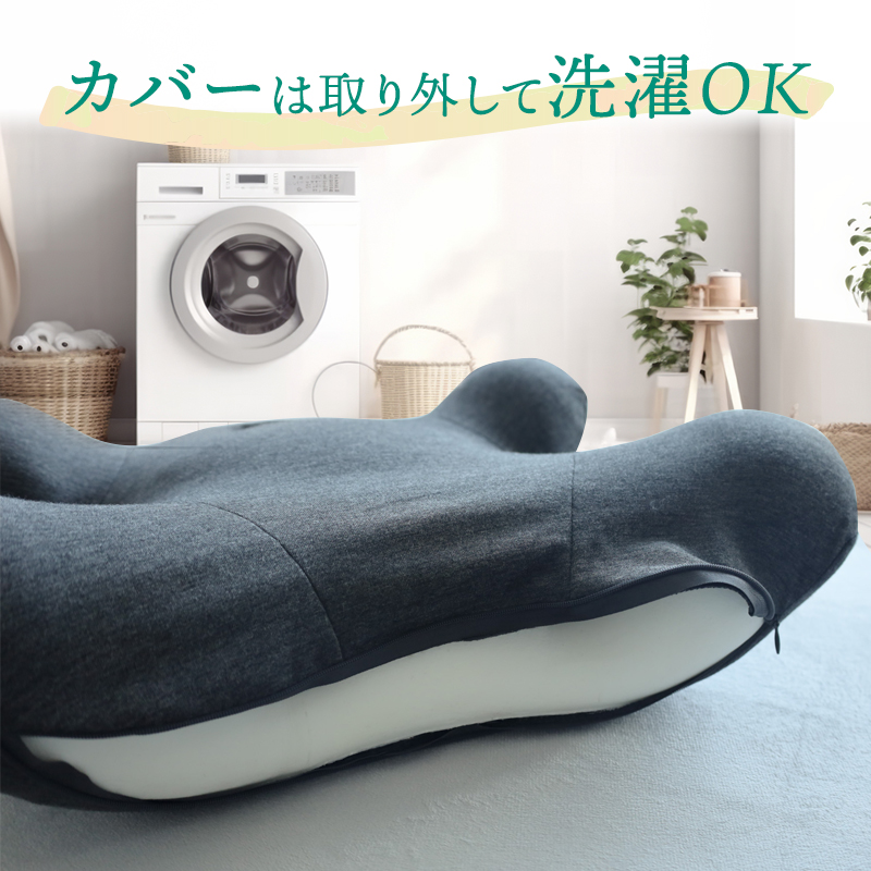 本体は洗濯不可。カバーは取り外してファスナーを閉じ、洗濯ネットに入れてのお洗濯は可。