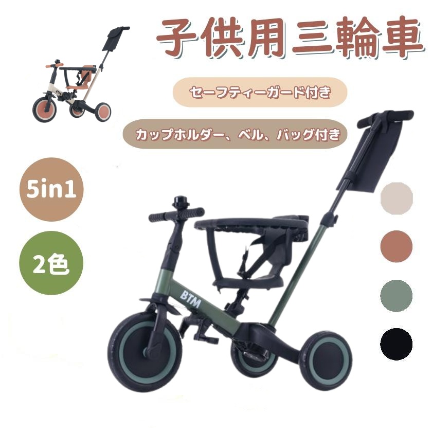 子供用三輪車 5in1 三輪車のりもの BTM 押し棒付き 安全バー付き セーフティーガード付き カップホルダー ベル バッグ付き 幼児用 軽量 誕生日 プレゼント