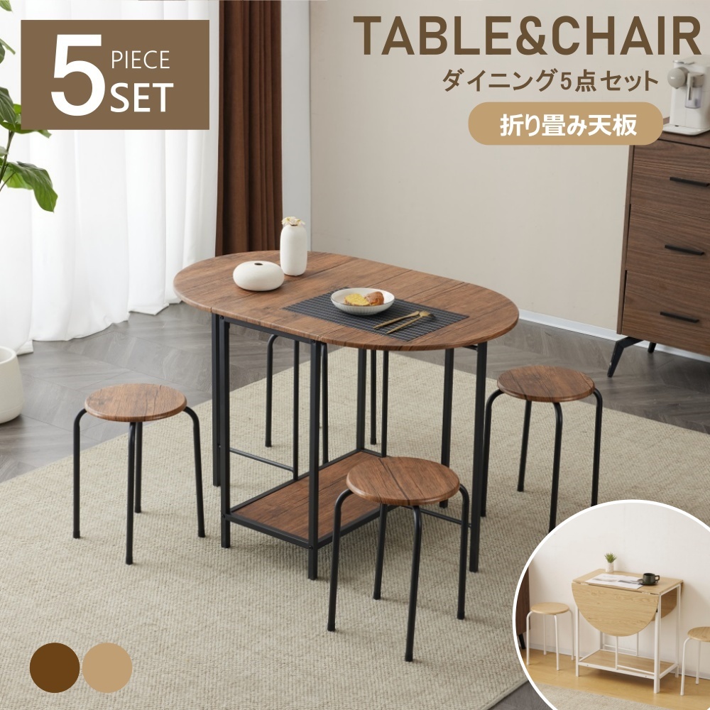 ダイニングテーブル 折り畳み天板 伸長式テーブル 5点セット 楕円 食卓テーブル 4人掛け 4脚セット テーブルセット モダン 5点 北欧