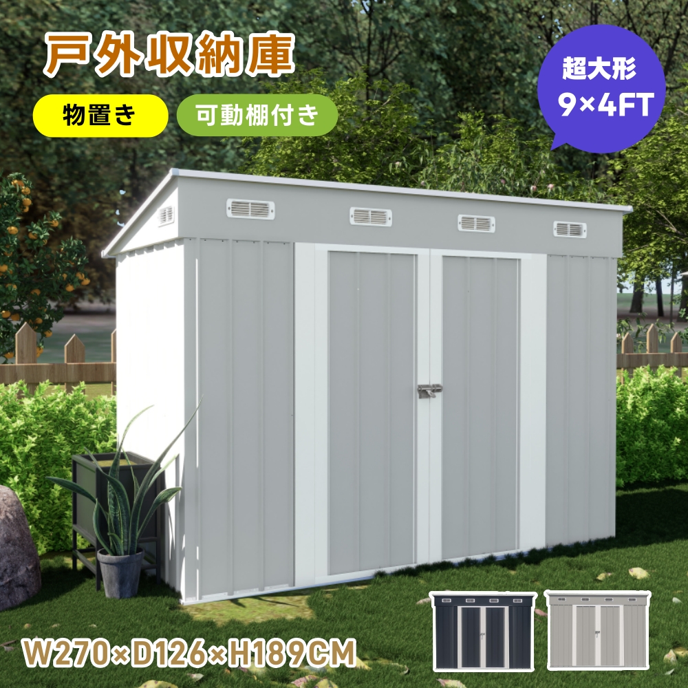 【全ストア5%OFFクーポン利用!】【可動棚付き】物置 屋外 スチール物置 倉庫 戸外収納庫 幅270 奥行 126 高189 物置き おしゃれ 超大型 防さび ベラン
